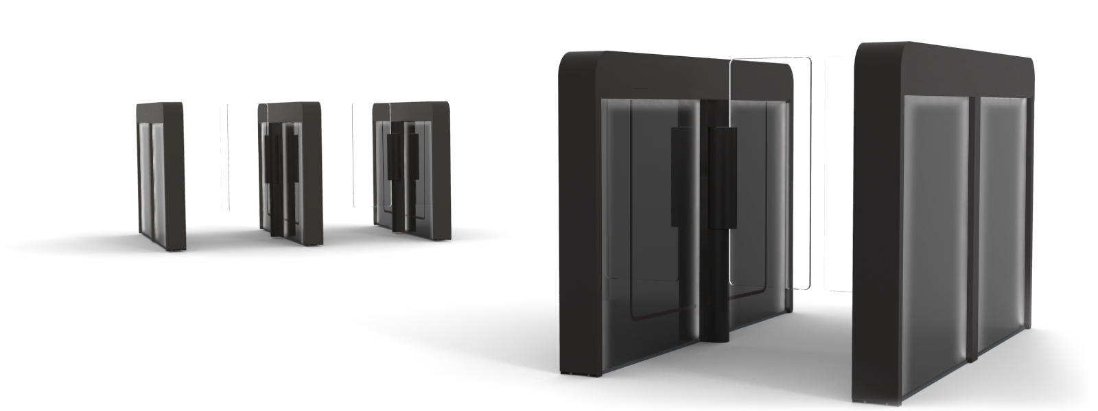 - Crystal clear glass swinging barriers
