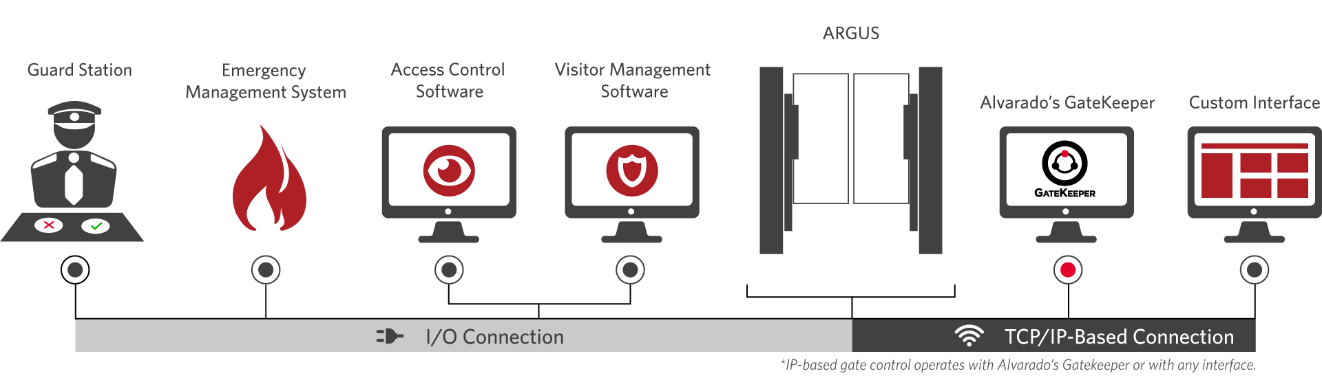 Integrating the ARGUS optical turnstile into your facility is quick and easy. The ARGUS integrates with virtually any access control or visitor management system and accommodates a wide array of credential readers. Dedicated inputs for fire or life safety systems are provided and outputs are available to turn on cameras, lock interior doors and provide remote notification of alarm events. The result is a barrier optical turnstile that not only looks amazing but provides superior access control and visitor management at facilities worldwide.