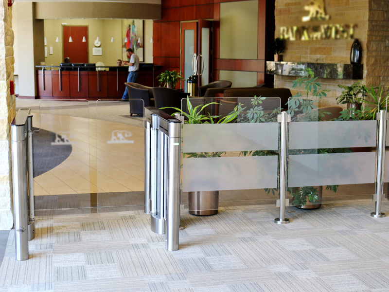 After an on-site visit and consultation, Alvarado recommended installation of SU5000 optical turnstiles between the exterior and interior doors at five separate locations within the facility to help eliminate tailgating and unauthorized entry. Aesthetics were important, and the slim cabinets and crystal clear panels of the optical turnstiles blended perfectly with the building design.