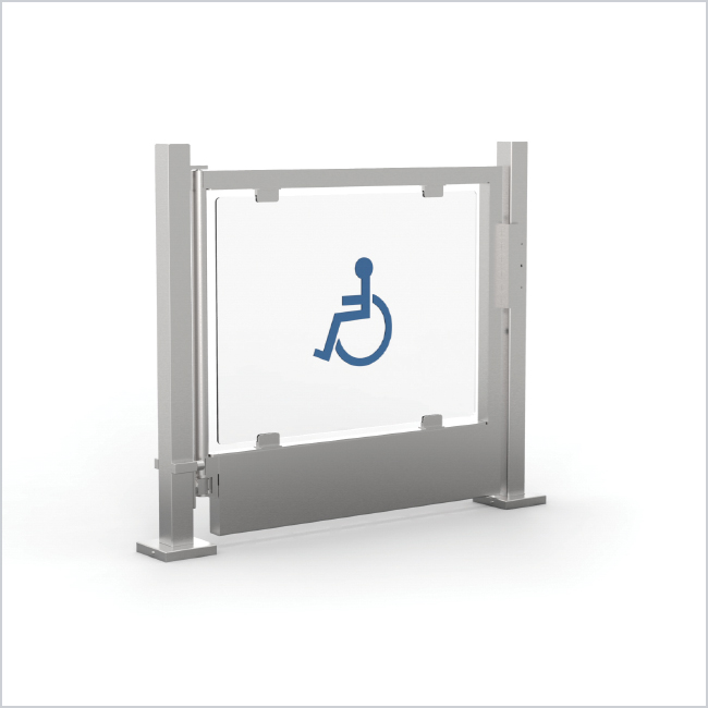 VSG-X Hydraulically dampened, self-closing pedestrian gate provides one way passage; manual and electric lock control versions.