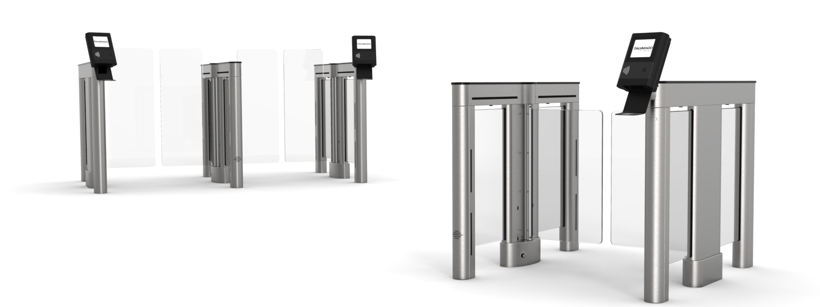 Alvarado’s IntraQ-SU5000 offers added security in an aesthetically pleasing and highly customizable package. Once printed or digital credentials are validated, panels open away, providing touchless entry. The IntraQ-SU5000’s intelligent optical detection system recognizes and notifies of instances such as tailgating or forced entry attempts. Custom cabinet colors, LED illumination, logo etching on panels, and floor-saver platforms for simplified installation are some of the customization options available.