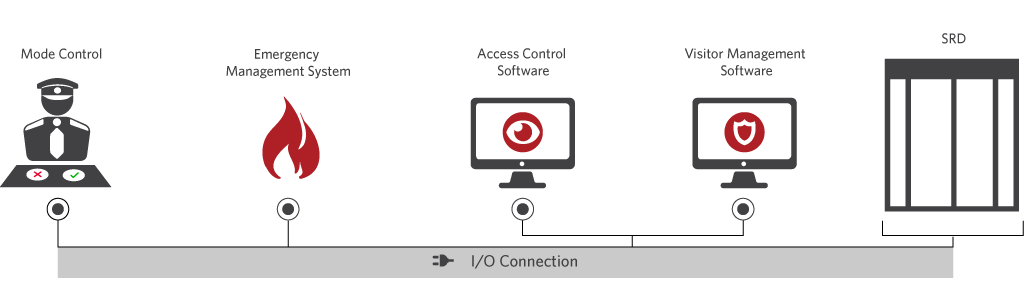 Integrating the SRD into your facility is quick and easy. The SRD integrates with virtually any access control / visitor management system and accommodates a wide array of credential readers including biometric. A dedicated fire system input is provided, and passage outputs can be monitored to validate passage after activation, or to provide accurate people counting.